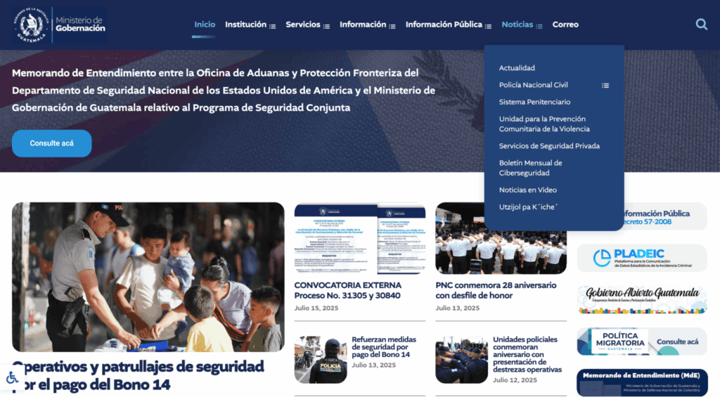 En el año 2009 se trabajo en conjunto con el Ministerio de Gobernación el nuevo diseño y estrategia de la página web con enfoque en comunicación social, esto marcó un prescedente que hizo que muchos Ministerios y otras entidades de Estado usaran nuestro diseño y arquitectura, esto sigue usándose y actualizando a lo largo del tiempo.