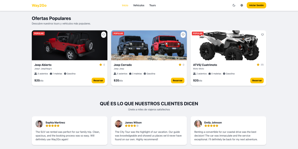 Plataforma de renta de vehículos y reserva de tours para una Empresa privada de Cozumel.